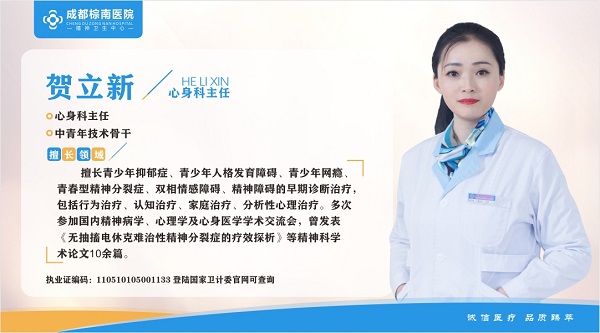 摘要贺立新 医生简介 从事精神疾病及心理诊疗临床工作20余年。擅长青少年抑郁症、青少年人格发育障碍、青少年网瘾、青春型精神分裂症、双相情感障碍、精神障碍的早期诊断治疗,包括
